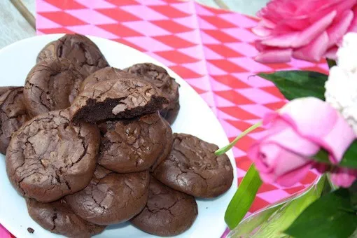These cookies are the best of both worlds. They have the chocolaty flavor and chewy center like a brownie and the shape and outside texture of a cookie. They have that wonderful flaky texture on the outside like on the top of a brownie.