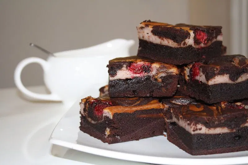 The tart, tangy flavor of the fresh raspberries make these delicious cream cheese brownies a lovely treat. Cake-like around the edges with a fudge-like middle, swirled with a sweetened cream cheese makes such a fabulous combination of textures and flavors.